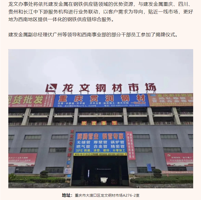 續添新力!建發(fā)金屬重慶龍文辦事處成立