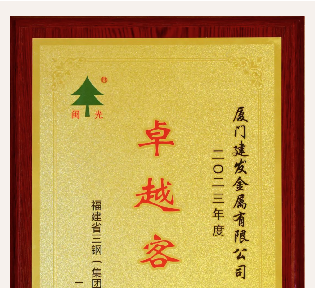 建發(fā)金屬獲評2023年度三鋼集團“卓越客戶(hù)”榮譽(yù)稱(chēng)號